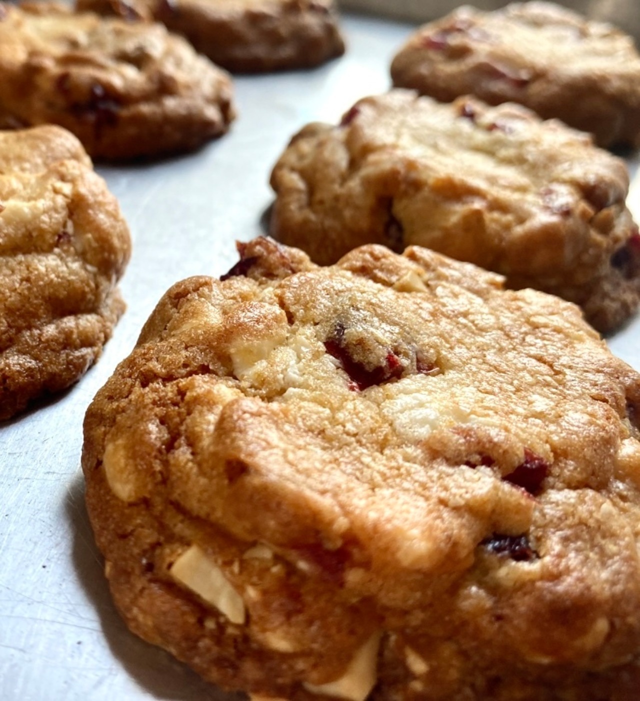 クランベリーとホワイトチョコとカシューナッツが絶妙な食感が楽しいクッキーを是非お試しください♪
